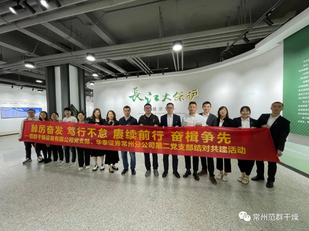 4月21日下午,常州市范群干燥設備有限公司黨支部、華泰證券常州分公司第二黨支部在長江大保護常州展示館結對共建活動。以“踔厲奮發 篤行不怠 賡續前行 奮楫爭先”為主題,探索新形勢下黨建工作合作的新思路、新模式、新做法,實現共建共享共贏。