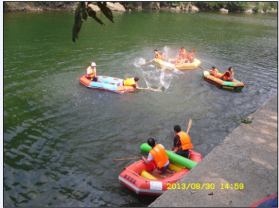 第二天早餐后我們來到了華東地區最后一篇原始森林、國家級野生動植物自然保護區石臺牯牛降,游覽參觀國家級自然保護區、AAAA級景區石臺牯牛降龍門風景區,游覽“嚴家古村” 居住著東漢著名隱士嚴子陵的后裔,典型的徽州民居古建筑保存完好。村中有老磨房、古祠堂和寫著紅軍北上抗日直至大躍進、文化大革命等各個時期標語的“標語墻”;“情人谷”三面環山,巖壁陡峭,茂林修竹、泉水淙淙,是情侶眷屬的好去處;“四疊飛瀑”象一匹碩大的四疊白練直掛崖壁,如雪似玉,曲折回環,似從天來、蠟燭峰等景點;龍門大峽谷:河馬戲鱷、“龍門潭” 潭水青碧,峽谷幽深,怪石遍布,古木如蓋,有百丈巖、滾石灘等景點,實為大自然創造的“無聲的詩,立體的畫”。 下午赴中國境內最美的河流——秋浦河怪潭漂流景區,在素有“詩之河”之美譽的秋浦河上游,河水常年澄碧清澈,兩岸古柳依依,峻峰林立,美景甲天下。全程采用皮劃艇體現參與性和互動性讓大家更深入的親近大自然、體驗大自然,各位同事時而泛舟前行,時而駐足打起水仗,笑聲連連不斷。