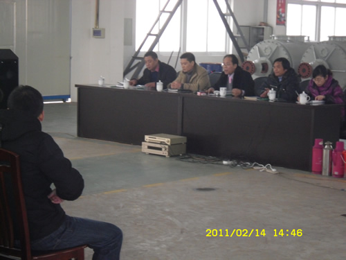 2月14日下午,我公司召開(kāi) 2011年度全體職工會(huì)議,會(huì)議回顧總結(jié)了2010年各項(xiàng)工作及指標(biāo)完成情況,精心安排部署2011年各項(xiàng)工作任務(wù)。公司董事長(zhǎng)范總到會(huì)并講話。