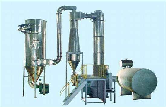 今朝,閃蒸干燥機器已普遍應用在染料、農藥以及有機化工、無機有機物:阿特拉津(農藥殺蟲劑)、月桂酸隔、苯甲酸、安眠噴香酸、草酸鈉、染料:蒽醌、氧化鐵黑、靛藍、丁酸、氫氧化鈦、硫酸鋅、各類偶氮染料中藍、鋁鉻黃、堿性嫩黃等。物料隨扭轉氣流夾帶上升,因為受離心力浸染,年夜塊,未達到水份即比重較年夜物料受離心力浸染,其扭轉半徑增年夜,當其扭轉半徑年夜于分級器半徑時,被擋在干燥室內進一步干燥破損,直至知足剛剛溢出。達到干燥要求的細顆粒隨熱氣流一路進入氣固分手裝配中廢氣經引風機排向年夜氣未達到干燥要求的濕顆粒團在氣流夾帶向上的同時受離心力的浸染被拋向器壁經分級器分手后又從頭落入干燥室底部被進一步破損和干燥直達到到所要求的粒度和含濕率。
